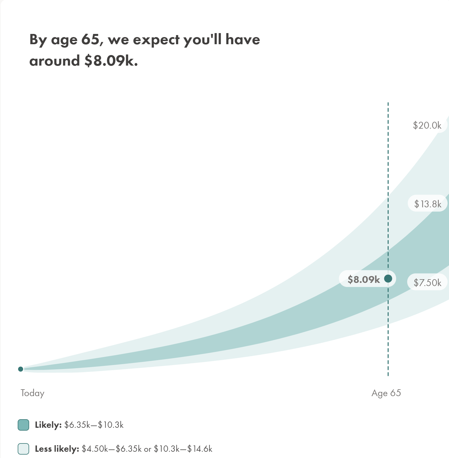 I can go to an individual account as well and see how my accounts are performing. For example, in the image below, it does show how my accounts will look years from now. The projection also shows the likely and less likely scenarios based on the compounding.
